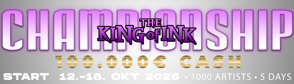 In October 2026, the spectacular King of Ink International Tattoo Championship will revolutionize the tattoo scene at the Jakob-Kiefer-Halle in Bad Kreuznach, Rheinland-Pfalz, Germany. Featuring 1,000 artists competing over five days in an epic showdown, this championship will bring together the world’s finest talents. With record-breaking prize money, a prestigious jury, breathtaking shows, and an unparalleled accompanying program, this event sets a new standard for tattoo competitions. Only 1,000 tickets are available, each serving as the exclusive key to the gates of THE KING OF INK. Be part of history—Be the King of Ink!